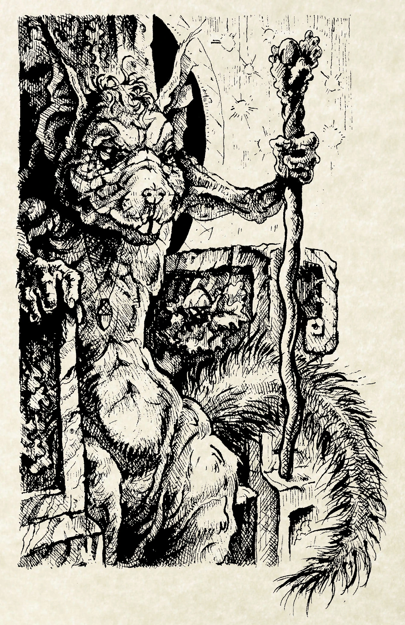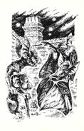 After this, the Starwife went outside into the cold, snow-covered yard. She created a magic circle in the snow and sat within it, waiting to ritualistically freeze to death. As she did so, Barker the rat approached her and taunted her. She finally saw through his disguise and realised he was Bauchan. She determined that the rat god had come to learn Jupiter's strength to see if the Raith Sidhe would have a chance at usurping him. The Starwife also asked Bauchan what happened to Piccadilly, to which Bauchan responded that Jupiter had killed him. The old squirrel knew that Piccadilly had been abandoned by Bauchan, though he denied this and said he appreciated the lad's bravery even if he was not a rat. The Starwife told Bauchan that she saw him as being more dangerous than Jupiter, as he hid behind a facade of goodness and so could lure the innocent to their doom.